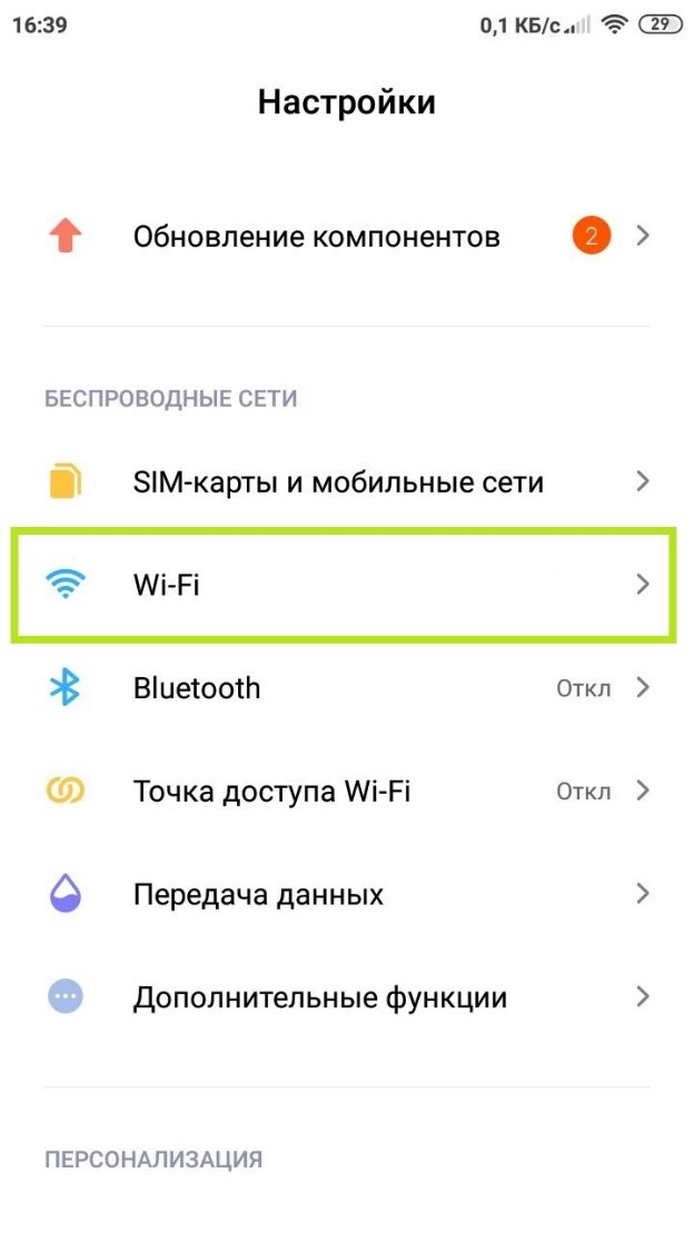 Для того что бы подключиться к беспроводной сети через Android устройство вам необходимо перейти в меню «Настройки» и выбрать пункт «WI-FI».