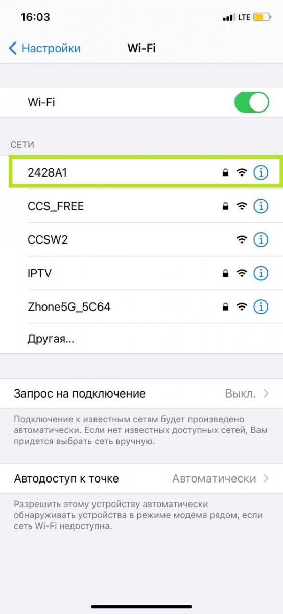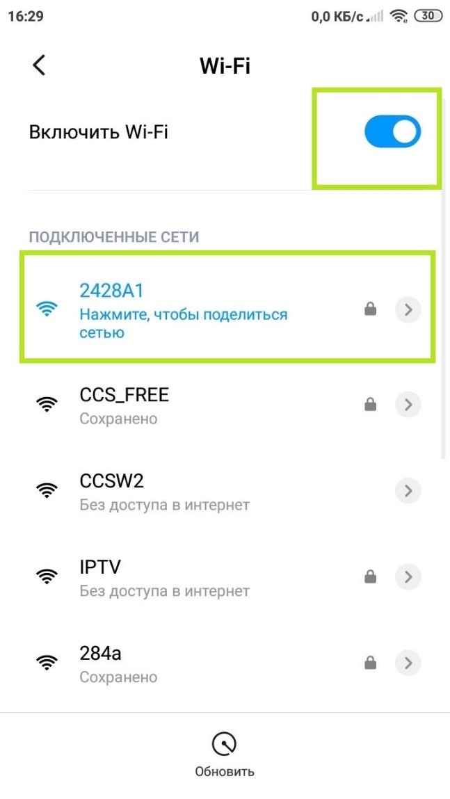 Включите Wi-Fi на устройстве и выберите нужную сеть.