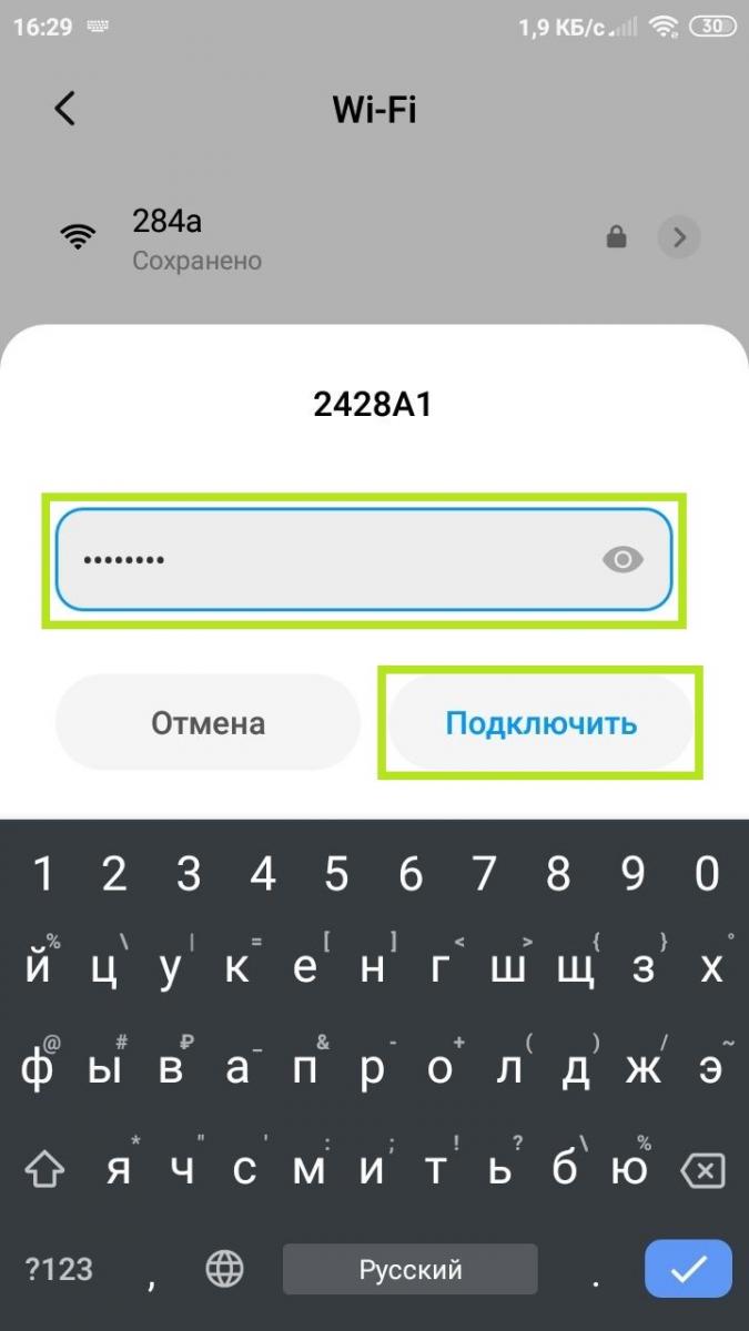 Введите пароль от сети, нажмите “Подключиться” и дождитесь окончания подключения.
