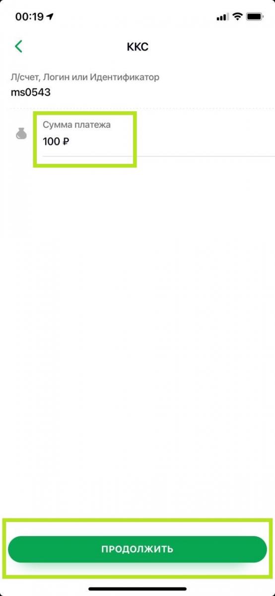 Введите необходимую к оплате сумму и нажмите кнопку “Продолжить”.
