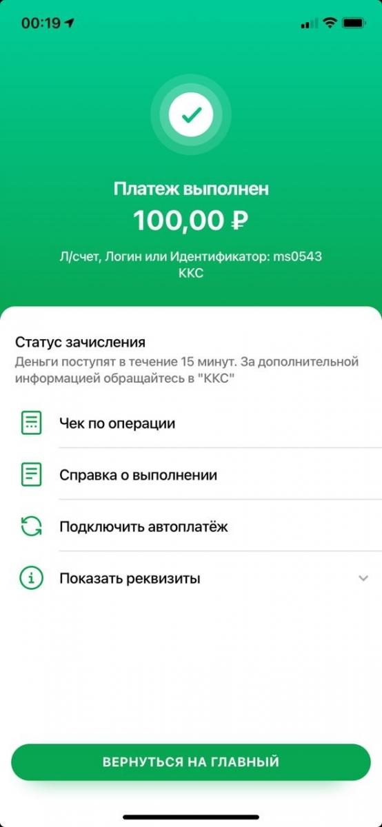 После подтверждения оплаты вы получите сообщение о том, что платеж выполнен и ориентировочные сроки зачисления средств на абонентский счет