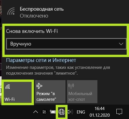 В правом нижнем углу, рядом с панелькой даты и времени нужно нажать на значок соединения. Выбираем пункт “Включить Wi-Fi вручную” и нажимаем на “Wi-Fi” что бы открыть список доступных беспроводных сетей.
