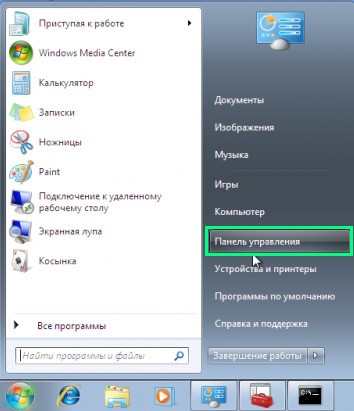 1. Нажмите кнопку "Пуск", выберите пункт меню "Панель управления"