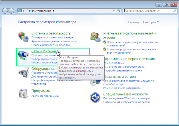 2. В открывшемся окне выберите пункт "Сеть и Интернет"