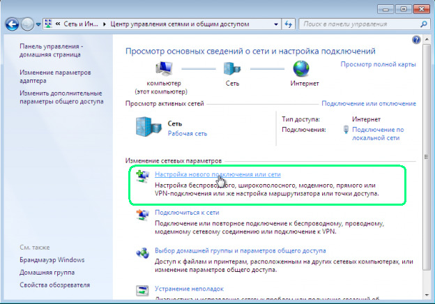 3. Далее нажмите "Центр управления сетями и общим доступом"