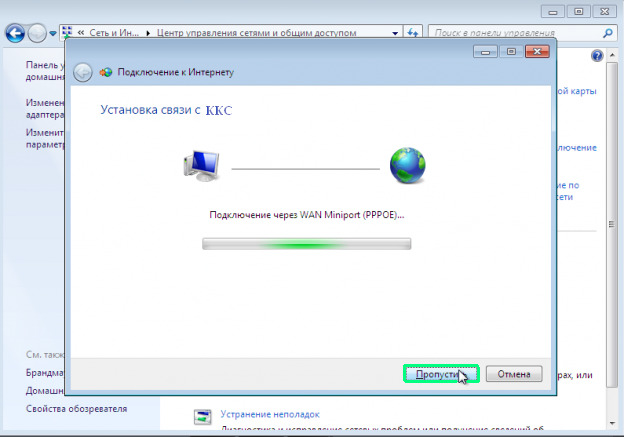 7. Введите имя пользователя и пароль указанные в бланке заказа (Приложение №1 к вашему договору). Поставьте галочку "Запомнить этот пароль", если не хотите вводить пароль при каждом подключении. В поле "Имя подключения" напишите ККС. Нажмите кнопку "Подключить"