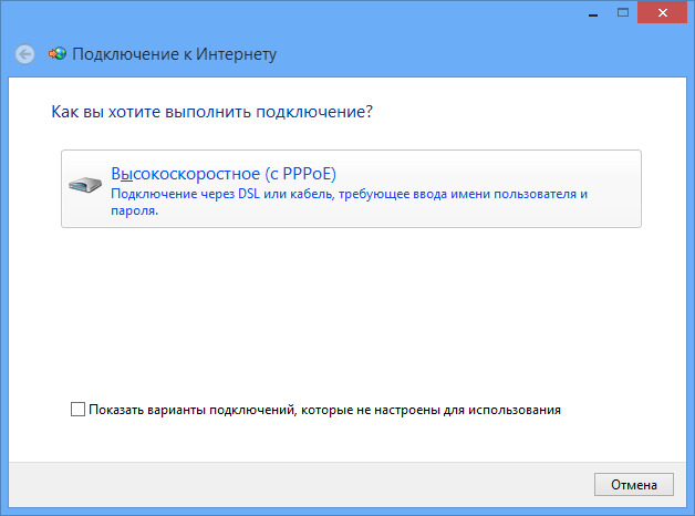 4. Выберите "Высокоскоростное (с PPPoE) соединение"