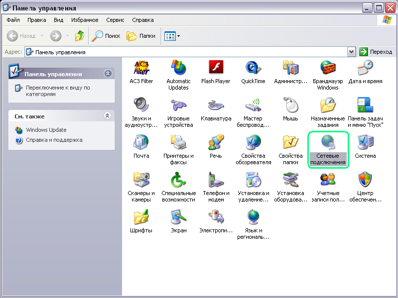 2. В "Панели управления" выберите пункт "Сетевые подключения" и зайдите в него двойным нажатием мыши, в окне "Сетевые подключения" выберите пункт "Создать новое подключение"
