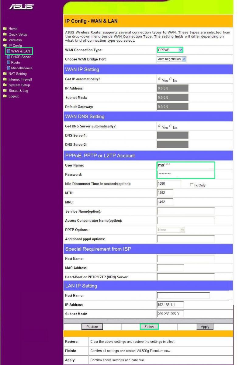 Настройка соединения на роутере Asus WL-520GS