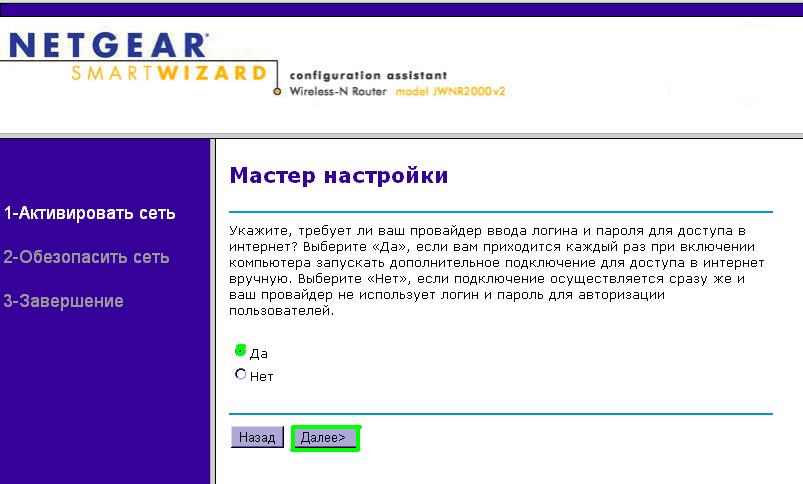 3. В появившемся окне поставить флажок на «да» и нажать «Далее»