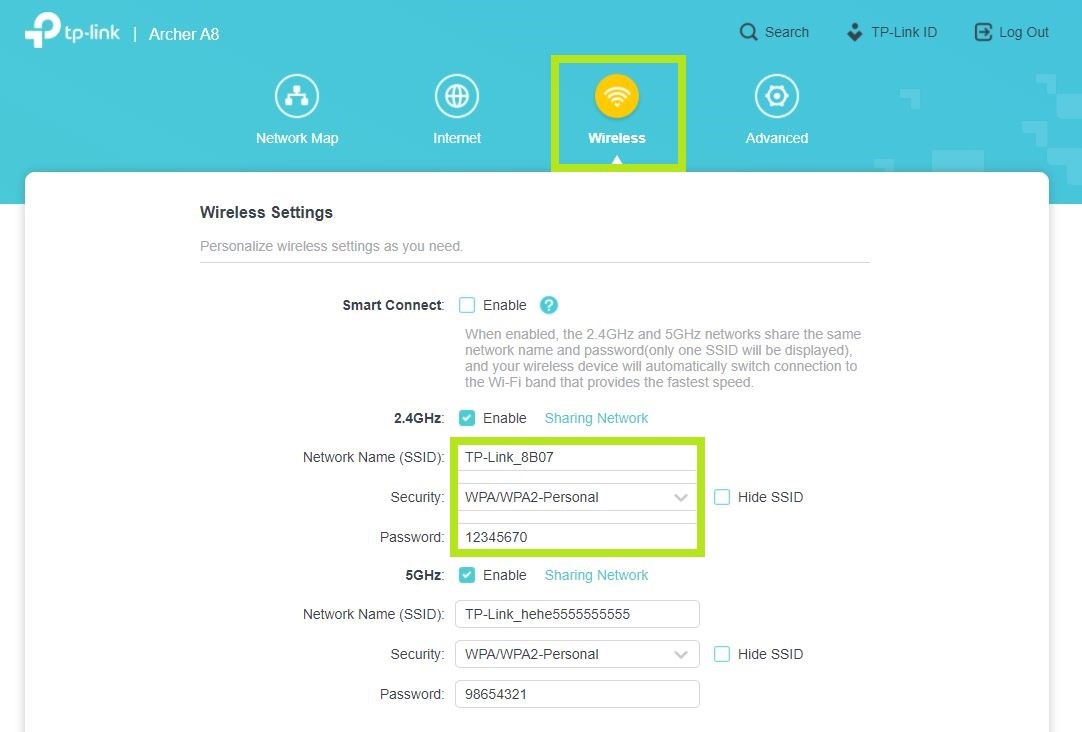 Для дальнейшей настройки Wi-Fi Вам необходимо перейти в категорию “Wireless”. В настройках сетевого режима вы можете изменить название вашей Wi-Fi сети в строке “Network Name (SSID)”.