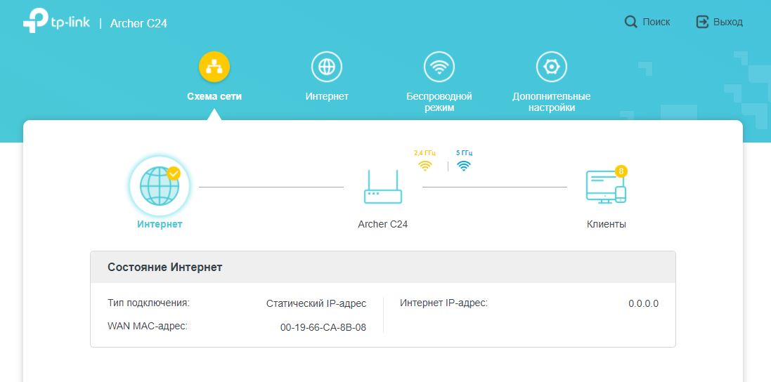 После авторизации откроется интерфейс роутера. Для начала настройки Вам необходимо выбрать режим работы вашего устройства