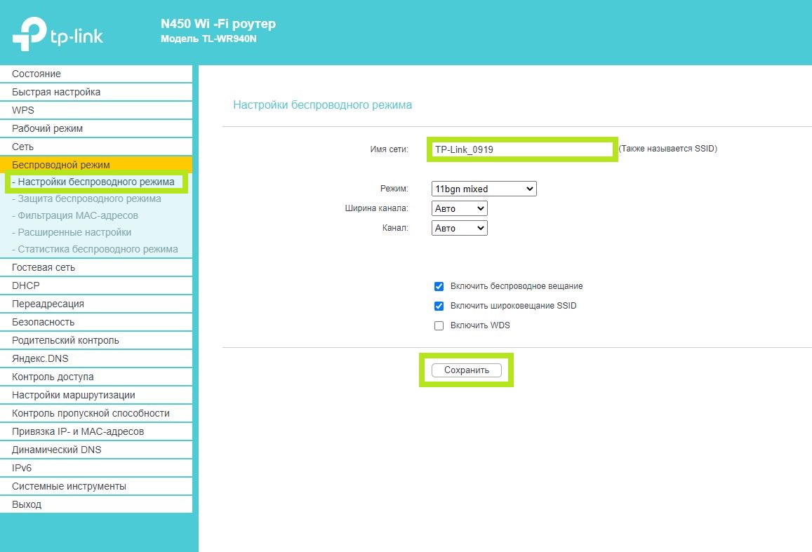 изменить название вашей Wi-Fi сети в пункте “Имя сети”. После того, как измените имя – нажмите “Cохранить”