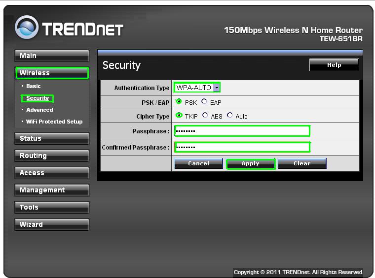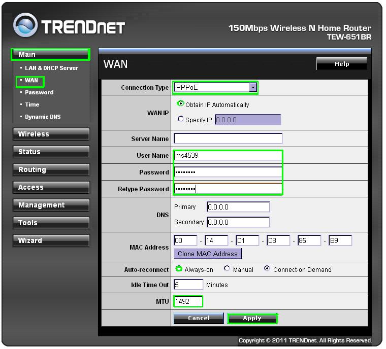 Настройка соединения на роутере TRENDnet TEW-651BR
