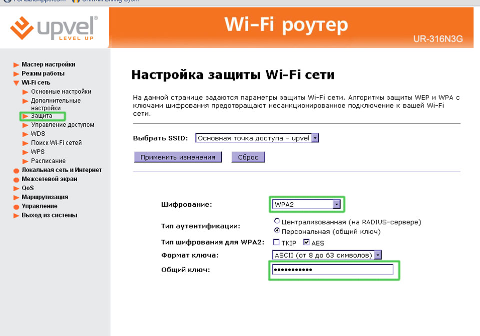 1. Перейдите в раздел "Wi-Fi сеть" -> "Защита"