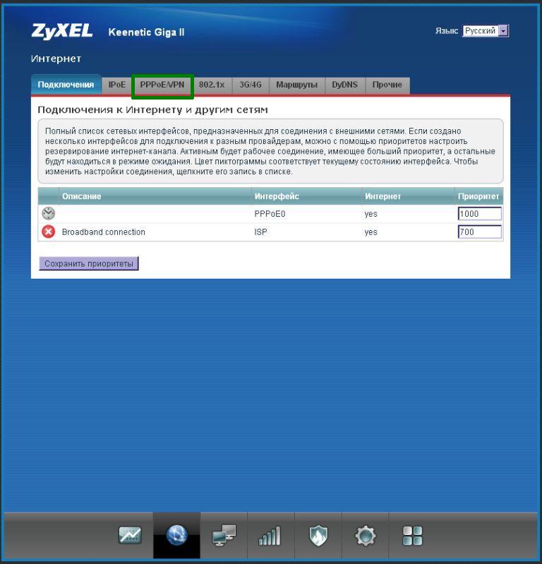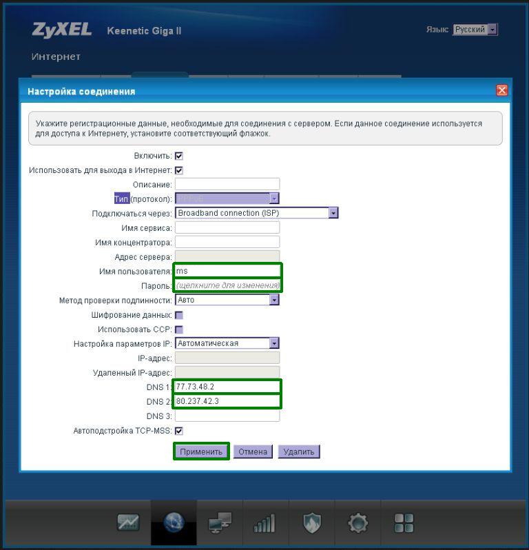 Настройка соединения на роутере ZyXEL Keenetic Giga 2