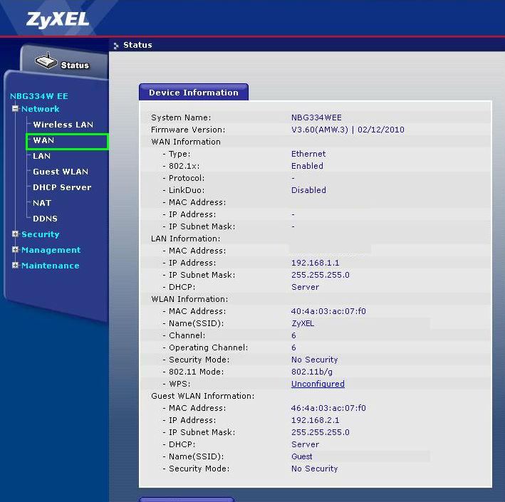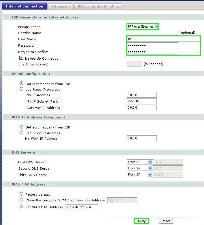 Настройка соединения на роутере ZyXEL NBG334w-ee